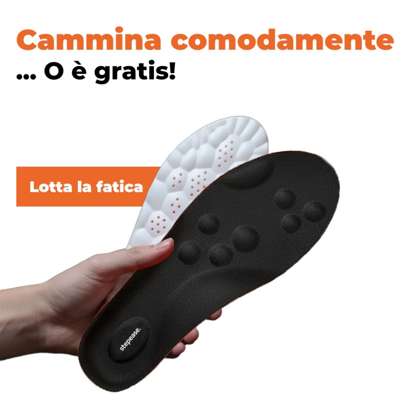 Scopri le solette STEPEASE: il massimo del comfort per i tuoi piedi. Ritrova il piacere di stare in piedi, camminare e muoverti senza alcun dolore.