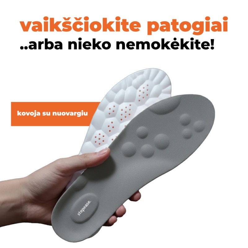 Susipažink su STEPEASE vidpadžiais – tikras komforto atradimas tavo pėdoms. Iš naujo pajusk stovėjimo, vaikščiojimo ir gyvenimo be pėdų skausmo džiaugsmą.