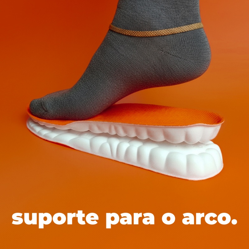 Mais conforto: sensação de bem‑estar a cada passo, reduzindo o cansaço e o desconforto.